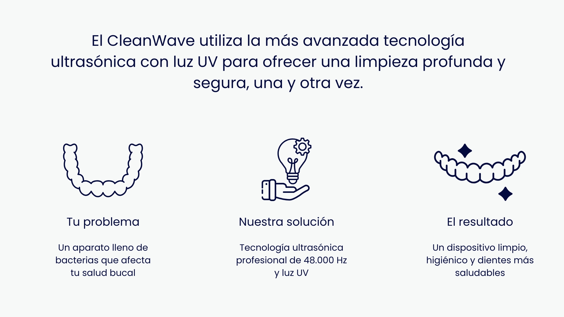 El CleanWave combina acción mecánica ultrasónica con desinfección profunda, logrando resultados realmente visibles.