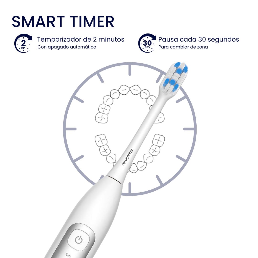 El Smart Timer del Sonic X1 te guía para cepillarte los 2 minutos recomendados por los odontólogos, con pausas cada 30 segundos para cambiar de zona.